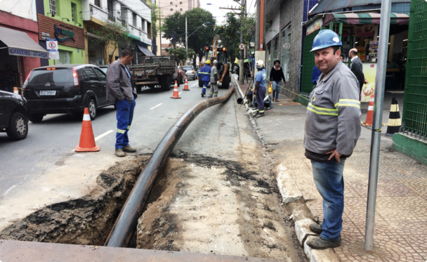How do you stop water loss through leaks in old pipe systems without major environmental impacts and restrictions? The answer: with trenchless technology, or more precisely the pipe bursting method. The solution is established but not well known in Brazil. With the GRUNDOBURST 800G, the defective old pipeline was successfully replaced with a new pipe in the existing route - without disrupting traffic, business life and the everyday lives of residents in the city centre of São Caetano do Sul.